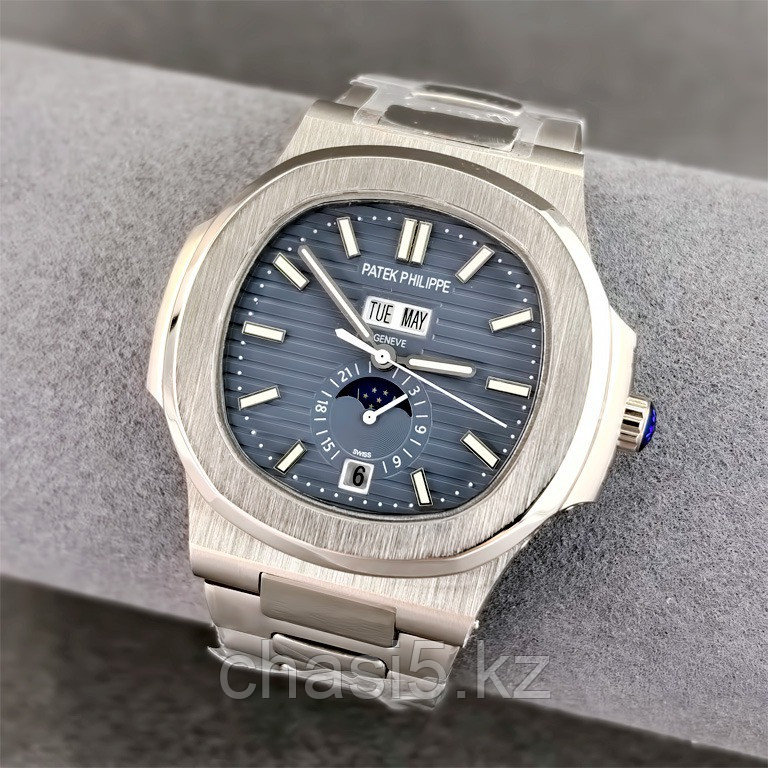 Мужские наручные часы Патек арт 24117, серебристый стальной корпус, серебристый стальной браслет. Застежка клипса "бабочка". Форма корпуса круглая, механические с автоподзаводом